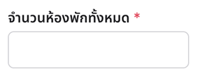 จำนวนห้องพักทั้งหมด - กรอกจำนวนห้องพักทั้งหมดที่มีภายในที่พัก โดยกรอกได้สูงสุด 500 ห้อง และกรอกได้เฉพาะตัวเลขเท่านั้น