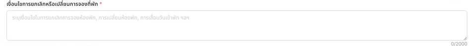 เงื่อนไขการยกเลิกหรือเปลี่ยนการจอง - ระบุรายละเอียดในการยกเลิก การเลื่อนหรือเปลี่ยนแปลงการจองที่พัก เช่น