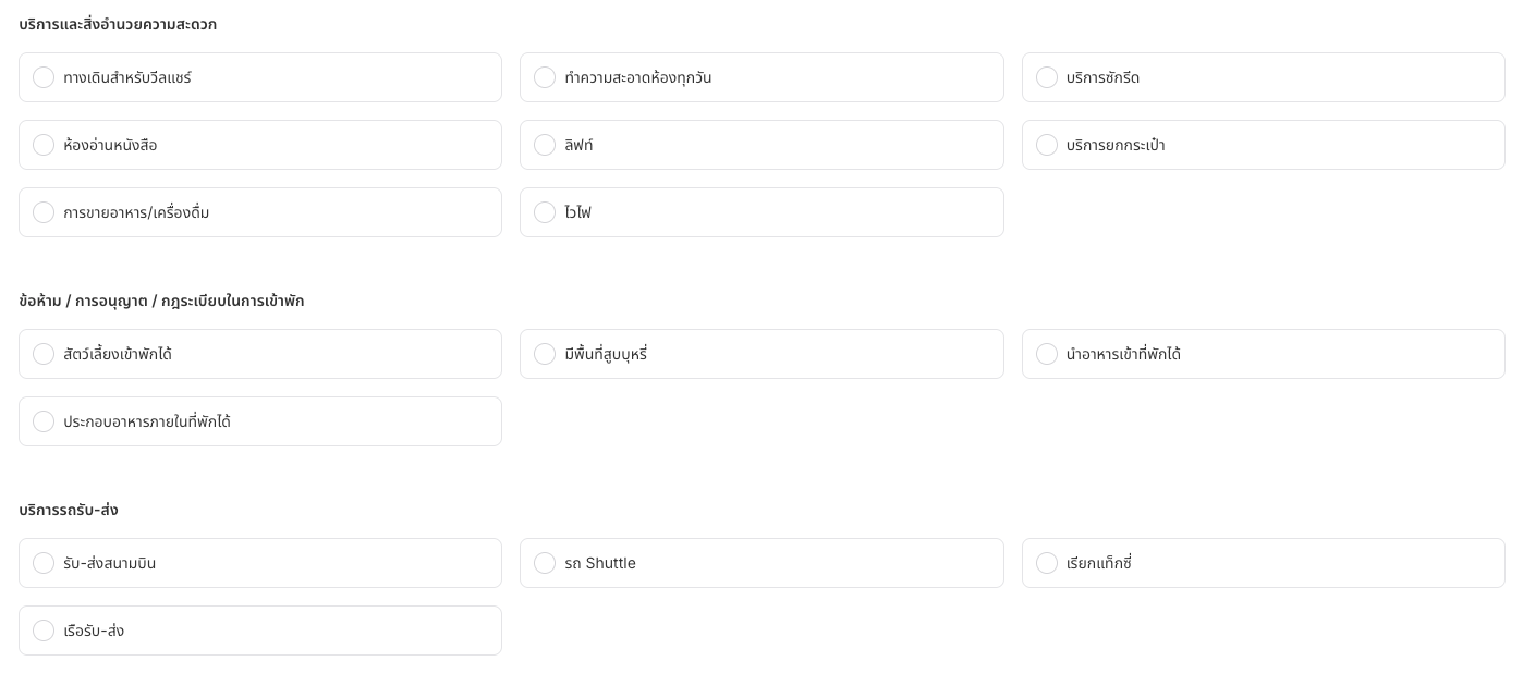 - ข้อห้าม / การอนุญาต / กฎระเบียบในการเข้าพัก